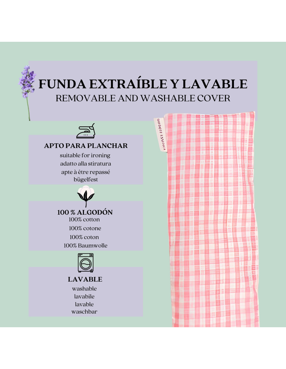 - High-quality materials: Made in Spain with organic wheat and lavender filling, and a 100% cotton washable cover.