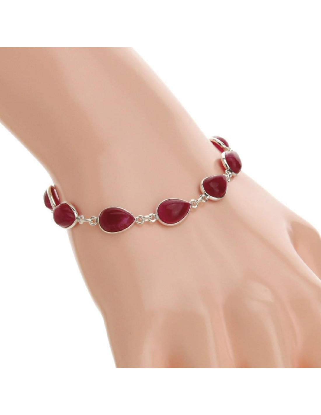 Handcrafted bracelet made of 925 sterling silver with natural Ruby tear-shaped stones. Each piece is unique, highlighting the natural beauty of the stones in a minimalist style. Made in India, this bracelet combines artisanal craftsmanship with elegant design, perfect for those seeking sophistication and a connection with the emotional and vital energy of Ruby.