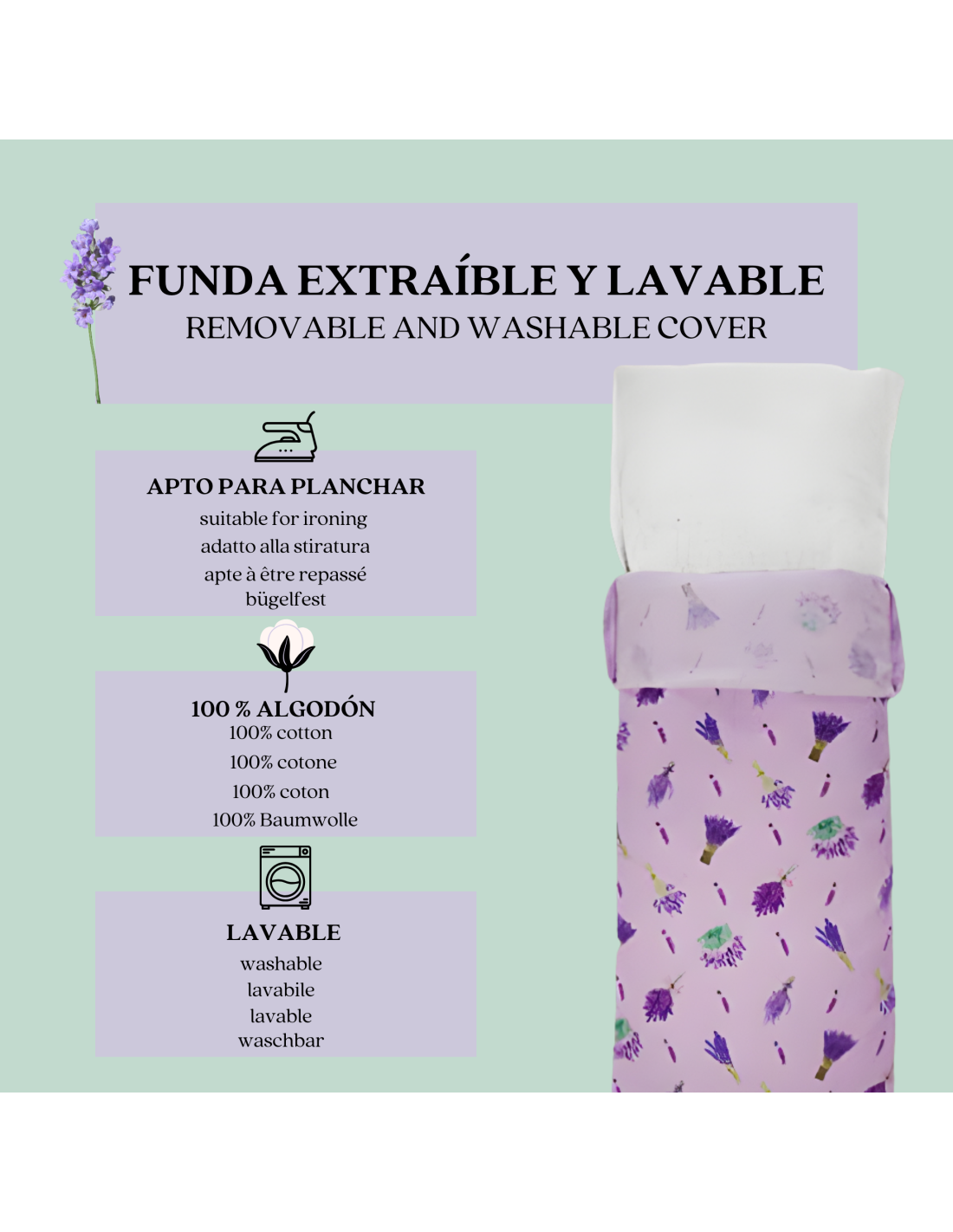 - Materiales naturales: Relleno con grano de trigo ecológico y lavanda de la Provenza Francesa, garantizando calidad premium.