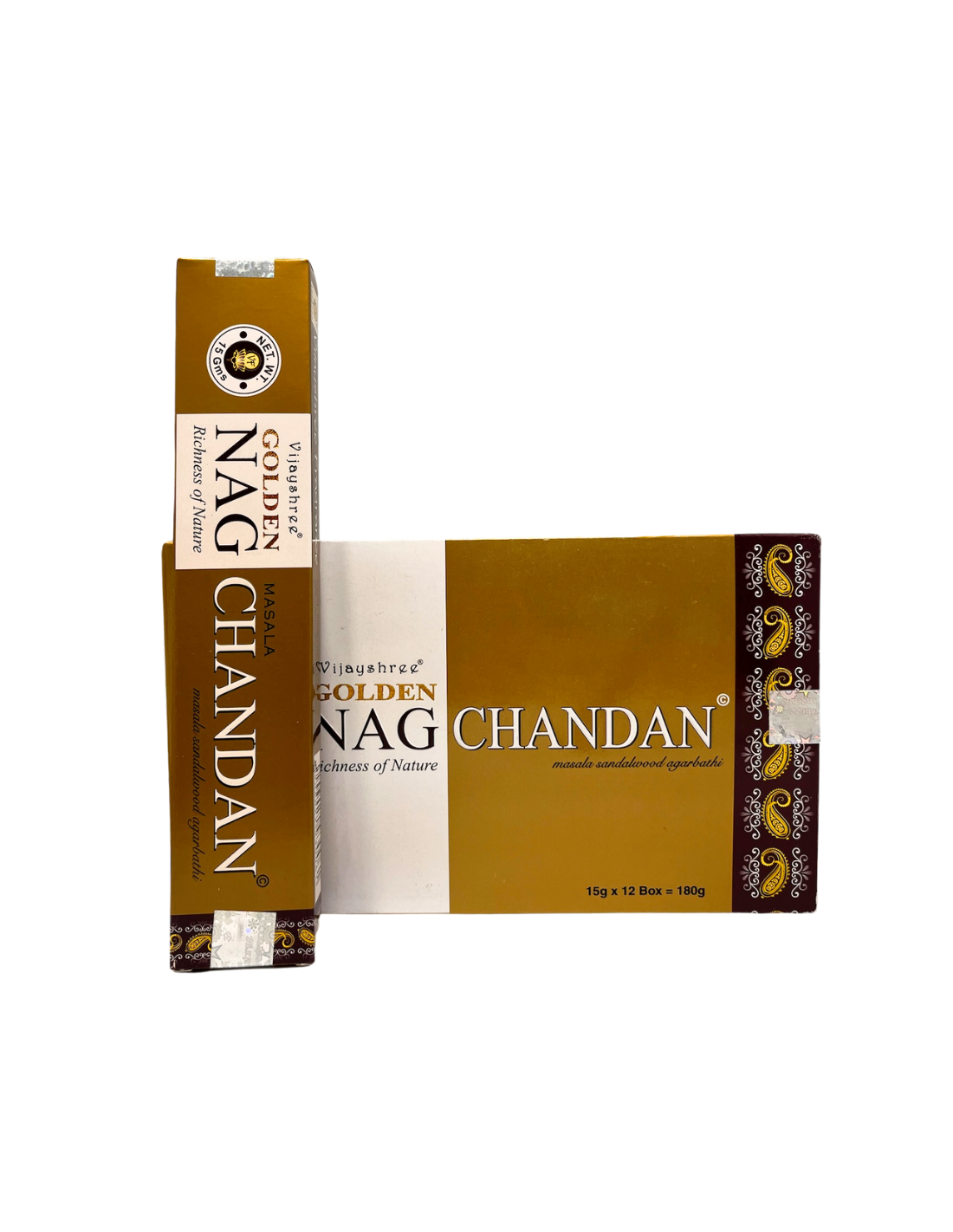 El incienso Vijayshree Golden Nag Chandan ofrece una fragancia suave, dulce y envolvente de sándalo, ideal para calmar la mente, armonizar espacios y acompañar prácticas espirituales. Perfecto para meditación, yoga o momentos de recogimiento y paz interior.