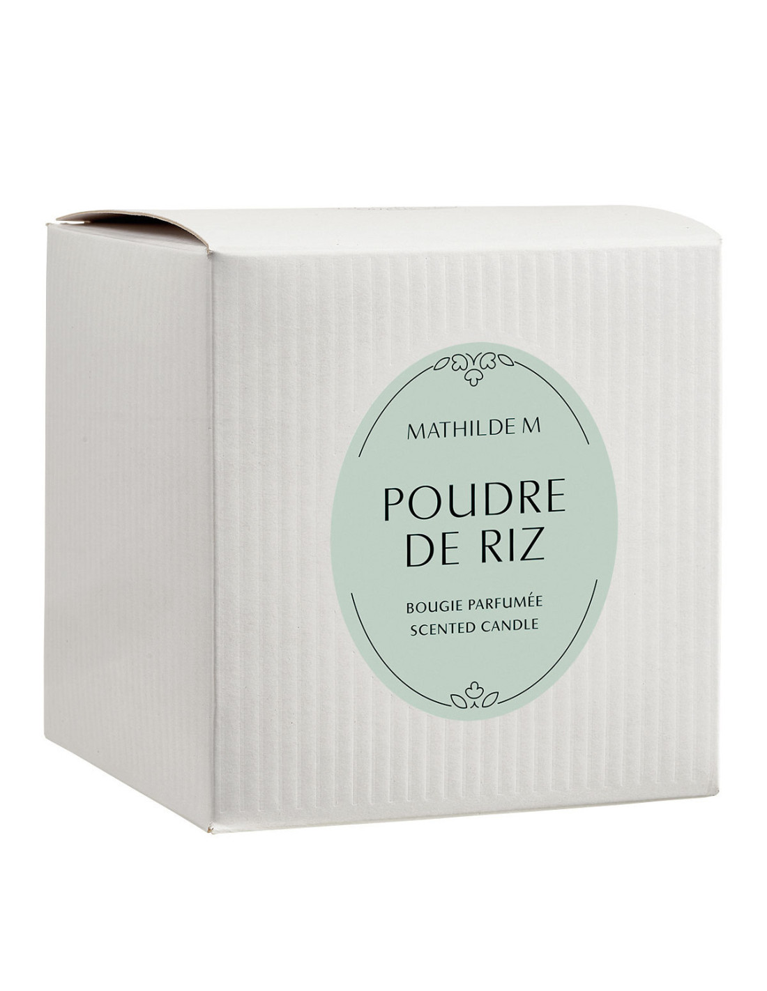 Déjate seducir por la suave y aterciopelada fragancia Poudre de Riz, un tierno aroma con notas atalcadas y florales que invitan a soñar despierto. Esta vela de generosas dimensiones perfuma agradablemente tanto al frío como al calor. Su estuche de cristal acanalado está rematado con una elegante tapa de yeso hecha a mano y marcada con el sello Mathilde M.